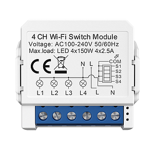 Smart WiFi Light 4CH Switch Module – Convert Any Existing Non-Dimmable Switch to Smart Control via App & Voice, Compatible with Alexa & Google Assistant