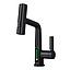 Modern Single Hole Basin Faucet with Waterfall, Pull Out Sprayer and LED Temperature Display, Black