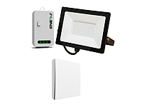 [EWS1068+WS1050X] 50W LED Floodlight Pre Wired with 500W RF Receiver + 1 Gang Wireless Kinetic Switch (White Body)