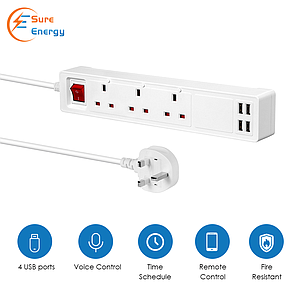 13A SMART Wi-Fi Power Strips with 3 Sockets & 4 USB