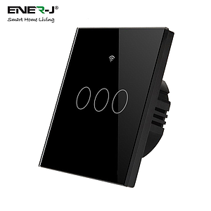 Smart Touch Switch (Black) 3 Gang without Neutral Wire. Only Live.(with adapter)