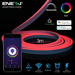 WiFi RGB Neon LED Strip with 3 Meters Neon Strip, WiFi + IR controller and 3A adapter